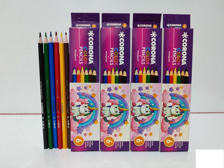 مداد رنگی 6 رنگ کرونا در طرح های کارتونی